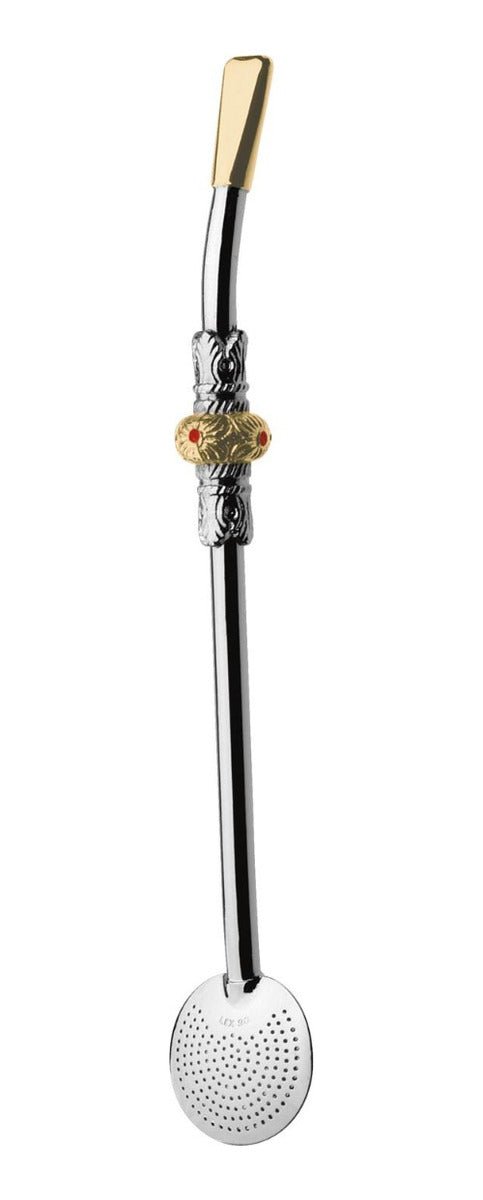 Bomba Cromada Alpaca Com Botão 24 Cm Artesanal Chimarrão