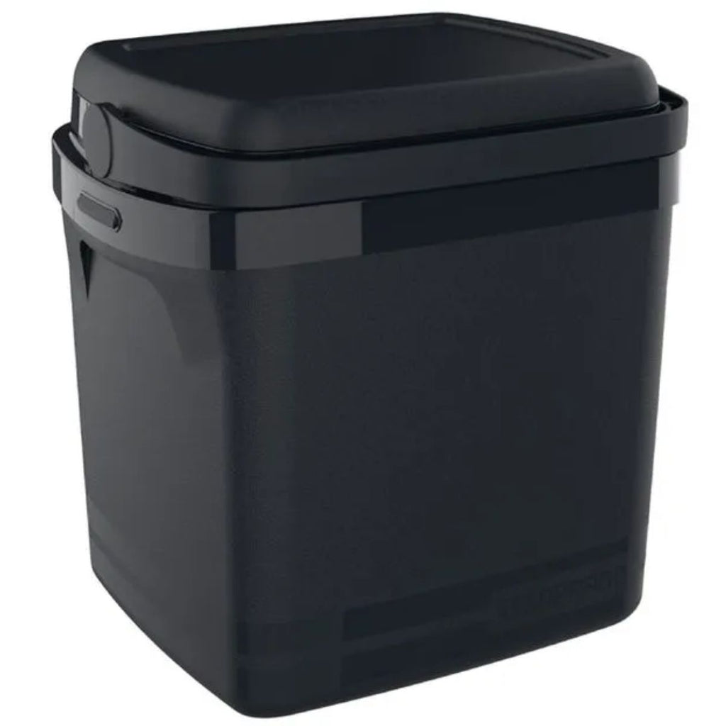 • Praticidade: Pegas laterais, tampa com trava e alça retrátil.