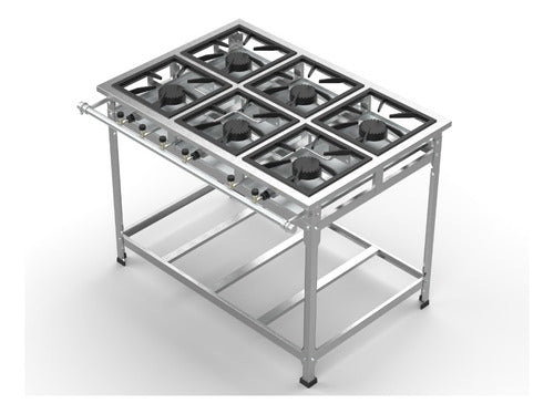 Fogão Industrial Aço Inox 430 Alta Pressão 6 Bocas 6qs