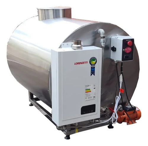 Gerador Água Quente Inox-Design Material estrutural: Aço inox 304 e isolamento térmico Potência do motor: 3 cv na moto bomba Capacidade: 600 litros Motor: 2 polos Comando: 24 volts, chave de emergência, reset e liga e desliga Tenção: monofásico 110/220 trifásico 220/380 Consumo: 12 kw/h até 24kw/h depende da litragem Temperatura: 25 a 90° Equipamento confeccionado conforme normas sanitárias, trabalho e ergonômica. Recirculação para uma melhor troca térmica.