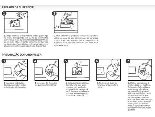 Kit com 3 unidades de Argamassa Epoxi FR 117 Reparo Pisos Hard 8kg é a solução ideal para quem busca resistência praticidade e acabamento profissional em reparos de pisos desenvolvida com tecnologia de ponta sua formula epoxi garante aderência superior secagem rápida e durabilidade mesmo em áreas de alto tráfego indicada para corrigir falhas trincas rachaduras e desgastes em concreto cerâmica e superfícies cimentícias oferecendo restauração eficiente e de longa duração Características técnicas Marca Hard Modelo FR 117 Reparo Pisos Tipo Argamassa Epoxi Peso por unidade 8kg Embalagem kit com 3 unidades total 24kg Indicação reparos de pisos em concreto cerâmica e cimentícios Propriedades alta resistência secagem rápida e excelente aderência Garanta já o seu kit e aproveite a confiabilidade de uma argamassa epoxi profissional
