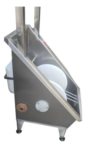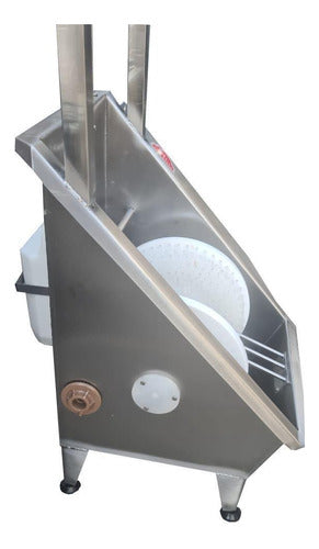 Fabricado totalmente em aço inox AISI 304, sendo a limpeza feita através de uma escova rotativa com cerdas de nylon para lavar a sola e a lateral da bota. O equipamento é acionado através de um sensor localizado na parte superior do lava botas (corrimão) que envia o sinal para o motorredutor e para a válvula solenoide que libera o fluxo de água. Todo o sistema elétrico já vem interligado e instalado em uma caixa plástica.Tensão: Monofásico 110/220. Dosador de detergente automático. Confeccionado conforme NR12 e normativa CISPOA. MEDIDAS: 1200 COMP X 450 LARG X 1200 ALT.