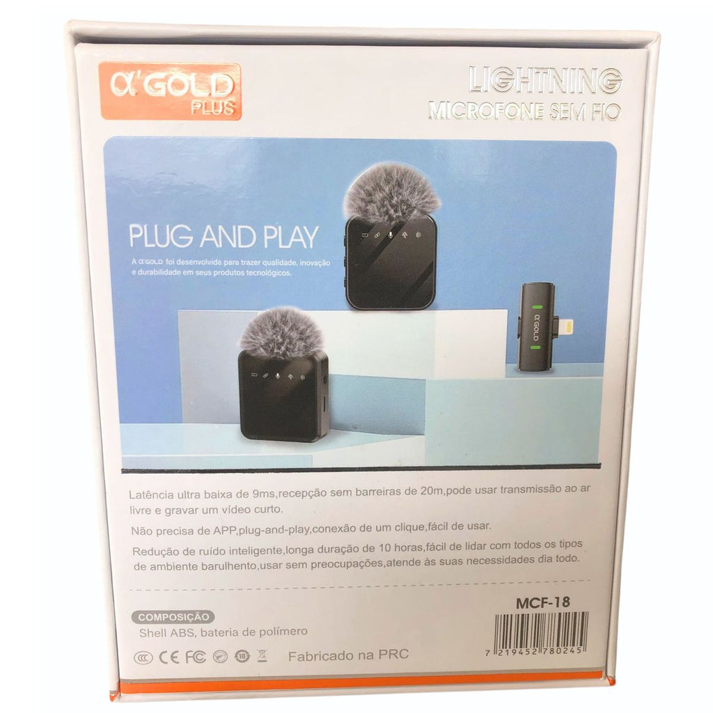 Ideal para criadores de conteúdo, entrevistas, aulas online e transmissões ao vivo, o microfone MCF-18 oferece praticidade e qualidade sonora com conexão direta para iPhones. O sistema conta com dois microfones de lapela e um receptor com entrada Lightning, dispensando configurações manuais e proporcionando uso imediato com emparelhamento automático.