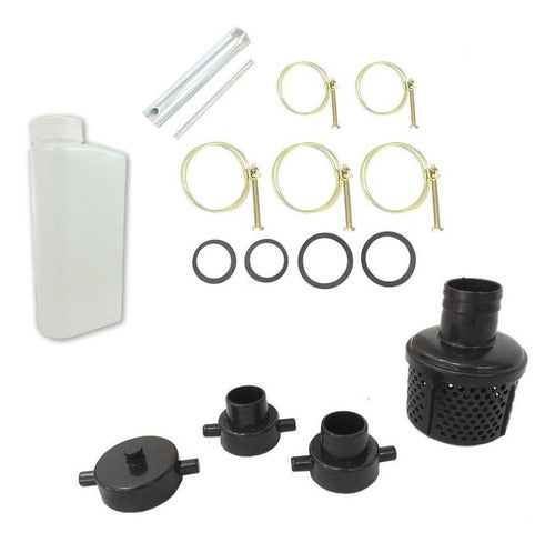 Itens e acessórios na(s) caixa(s): 02 Arruelas Calço da Bomba de Óleo, 02 Anéis de Vedação de Borracha, 02 Junta de vedação da Bomba de Óleo, 03 Abraçadeiras de Arame, 02 Nípel de Alumínio, 02 Porca do Nípel de Alumínio, 02 Juntas de vedação do Cabeçote, 01 filtro/Peneira com Tampa e Manual do Usuário.
