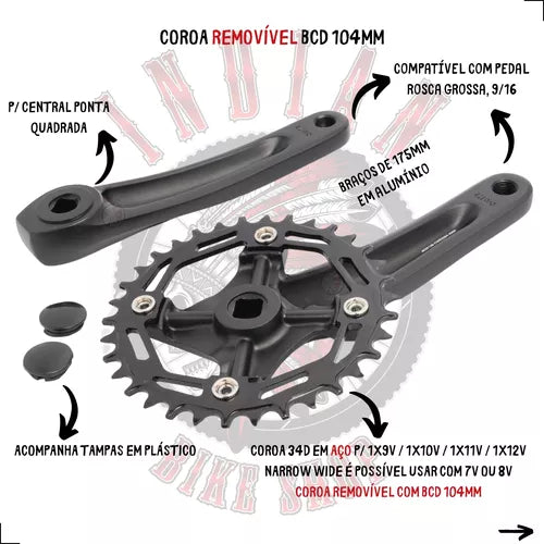 O Pedivela Absolute Wild D é a escolha certa para quem busca desempenho, resistência e leveza em suas pedaladas. Projetado para ciclistas que exigem qualidade em cada detalhe, ele conta com coroa de 34 dentes fabricada em aço, garantindo durabilidade e ótima transferência de potência, enquanto o corpo em alumínio proporciona leveza e robustez. Essa combinação entrega mais eficiência nas subidas e maior segurança nos terrenos mais variados. Com design moderno e construção precisa, o pedivela Absolute Wild D é ideal para quem deseja um upgrade confiável, seja em treinos, trilhas ou pedaladas urbanas. Características do produto: Modelo: Absolute Wild D Coroa: 34 dentes em aço de alta resistência Material do pedivela: Alumínio leve e durável Ótima transferência de potência e desempenho estável Indicado para mountain bike, trilhas e uso urbano Construção robusta e de longa vida útil Garanta já o seu Pedivela Absolute Wild D e eleve a performance da sua bike com qualidade e confiança!