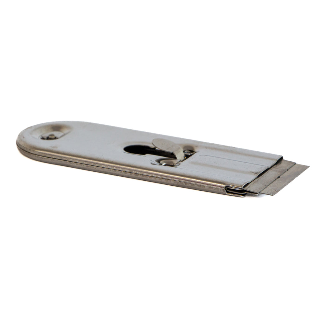 - Trava de Segurança: Possui trava que, quando fechada, torna o raspador totalmente seguro para manuseio e armazenamento.