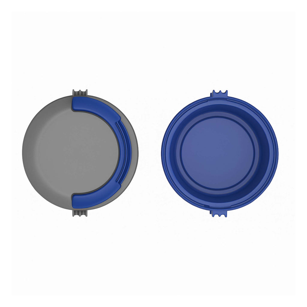 Possui acabamento robusto, alça retrátil para transporte, sistema de fechamento por rosca e é livre de BPA. Está disponível nas versões sem divisão ou com divisão interna dupla, adaptando-se à sua necessidade.